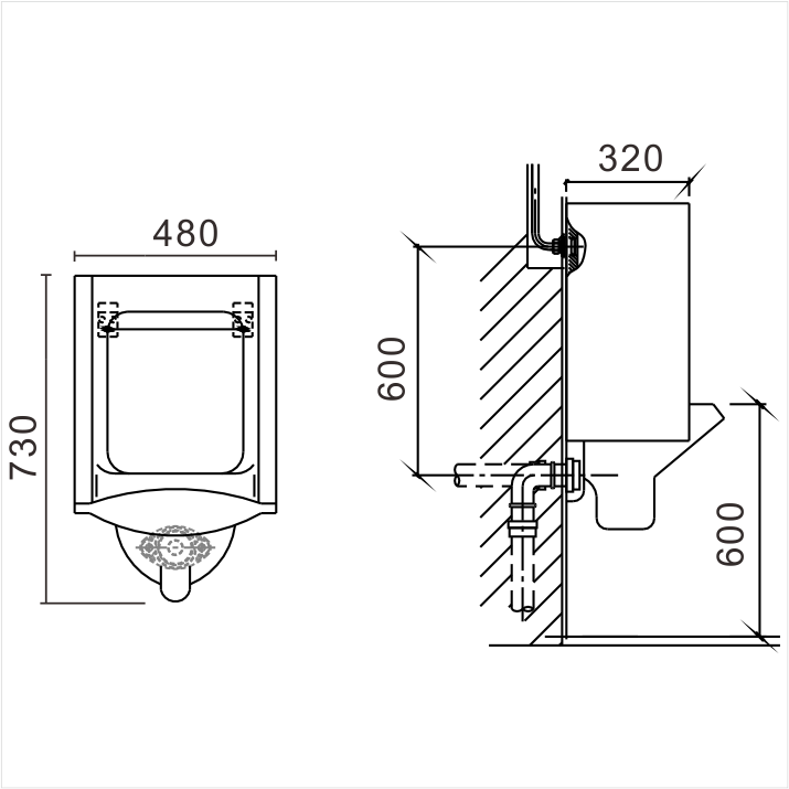 掛墻式陶瓷小便斗G12311